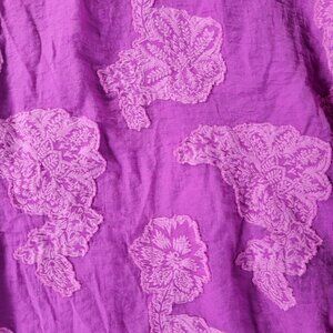 This LOFT women’s blouse in size Medium is crafted in a beautiful purple floral jacquard fabric with romantic texture. Featuring a keyhole neckline and long sleeves, this versatile top blends boho charm with elevated style, perfect for work, date night, or everyday wear.