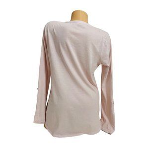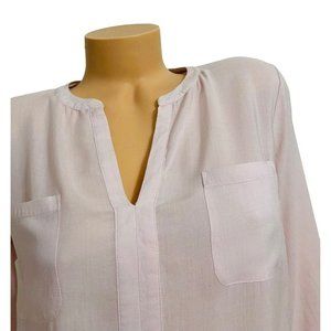 LOFT Women’s MEDIUM V-Neck Top Long Roll Tab Sleeve T-shirt With Pockets