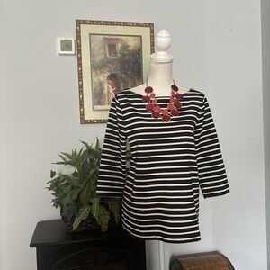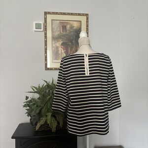 LOFT Womens Medium Blouse 3/4 Sleeves Boat Neck Striped 1/4 Zipper Back Pullover