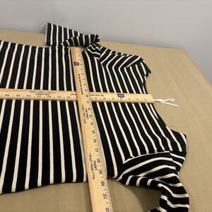 This LOFT blouse is a versatile addition to your wardrobe. It features a round neckline and casual 3/4 sleeves, with a boat neck and 1/4 zipper back for added style. The striped pattern and collarless design make it perfect for casual occasions, while the stretchy fabric ensures a comfortable fit all year round.