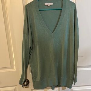 Chic V-neck sweater in a soft mint hue. Ideal for layering or wearing alone. Effortlessly stylish from LOFT.