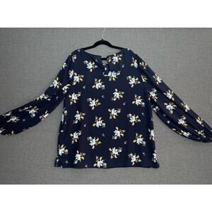 LOFT | Women's Navy Blue Floral Blouse | NWT | Small