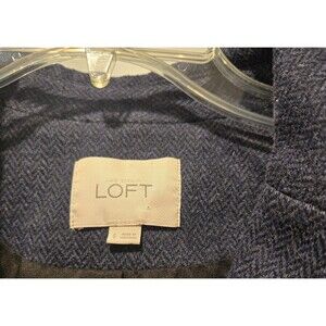 Keywords: LOFT, Blazer, Jacket, Navy Blue, Herringbone, Black Trim, Workwear, Career, Professional, Business Casual, Womens, Small, S