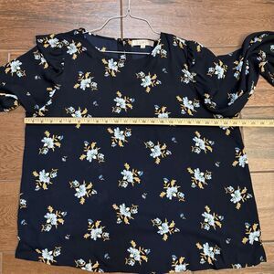 LOFT Women's Navy Floral Flowy Long Sleeve Blouse Top XL