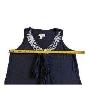 LOFT Womens Navy Blue Sleeveless Floral Embroidered Collar Bow Medium Tank Top