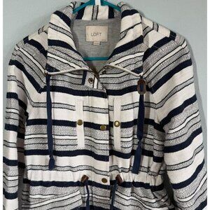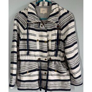 LOFT Womens Navy/White Breton Anorak Nautical Hooded Jacket Small Petite