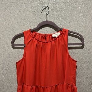 LOFT Women’s Orange Tiered Swing Dress Crew Neck Sleeveless Size XS Cruise Wear