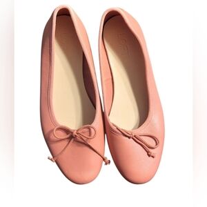 LOFT Women's Pink Leather Ballet Flats With Bow Detail Size 8.5