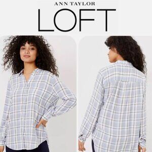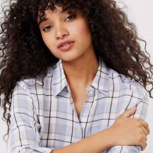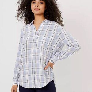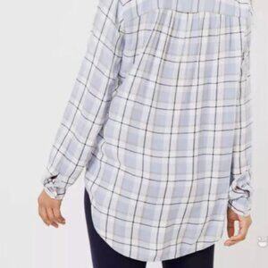 LOFT Women's Plaid Tunic Button Down Shirt - Blue White - Size Small