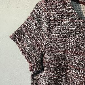 LOFT Womens Red Purple Knit Dress Short Sleeve Round Neck Size Small