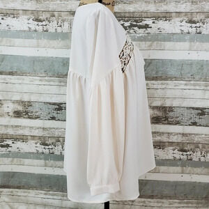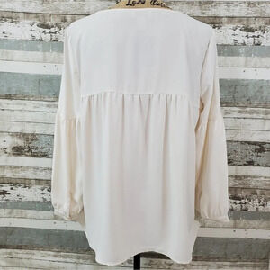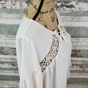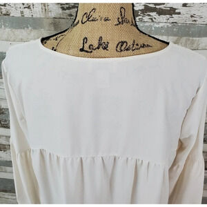 LOFT Women's Regular Oversized Lace Tassel Cutout Blouse Cream Size Small