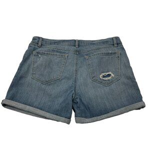 LOFT Women's Relaxed Patch Style Roll Hem Denim Shorts, Medium Wash, 29/8