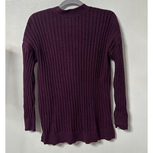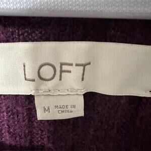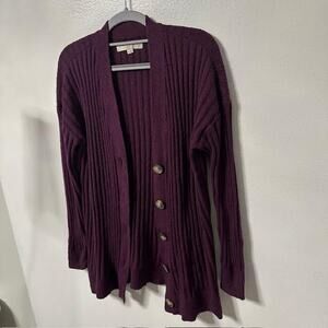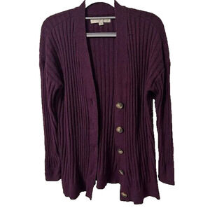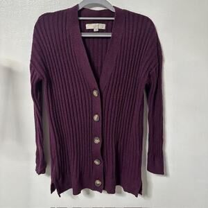 LOFT Women’s Ribbed Button Cardigan Sweater Dark Purple Stretch Knit Size M