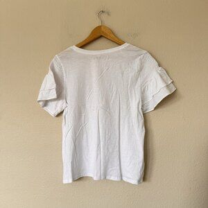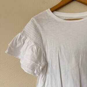 LOFT Women's Ruffle Tee Size Medium White T Shirt Smocked New Flutter