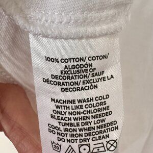 This LOFT Women's Ruffle Tee in size medium is a stylish and versatile white T-shirt perfect for casual occasions. Made from 100% cotton, this tee features short flutter sleeves, a crew neckline with ruffle accents, and a relaxed fit. Easy to care for with machine washable fabric, this lightweight tee is suitable for all seasons and embodies a classic style. This top from the classic LOFT brand is a timeless addition to any women's wardrobe.