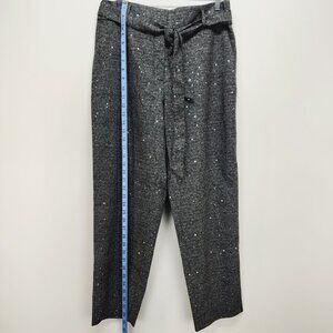 LOFT Womens Size 12 Black Sequin-Embellished Cropped Pants With Tie Waist