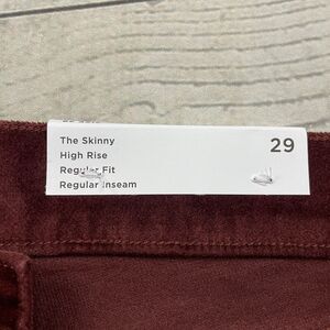 - LOFT Women's Size 29 Burgundy Velvet Skinny Leg High-Rise Stretch Pants NWT