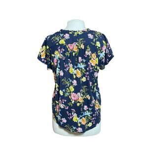 This Ann Taylor Loft blouse is a must-have for any fashion-forward woman. The black floral pattern adds a touch of femininity to this mixed media blouse, making it perfect for any occasion. The blouse is a size small and is designed to fit regular size women. The brand is a mix of popular brands, making it a versatile addition to your wardrobe. The blouse is perfect for women who love to make a statement with their fashion choices.