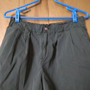 LOFT women's Small green shorts have zip fly, button closure and elastic waist. They have two front and two back pockets.