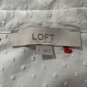 LOFT Womens Size Small White Swiss Dot Heart Print Button Down Shirt