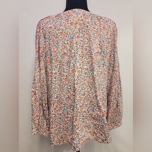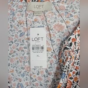 New With Tags Loft Women's Size XL floral, button front closure, v-neckline, 3/4 elastic cuffs, loose fitting blouse.