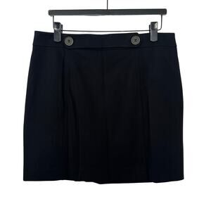 LOFT Womens Skirt Black Gold Buttons Size 12 Petite Fall Office