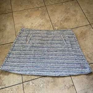 LOFT Womens Skirt Size 26 Ann Taylor Plus Blue Tweed Pocket Flippy Striped NEW