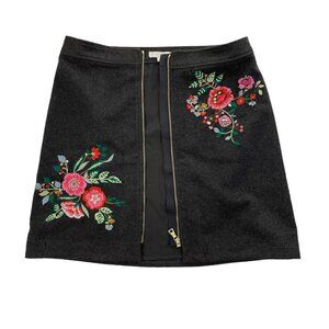 LOFT Womens Skirt Size 6 Petite Embroidered Floral Short Zip Front Closure Gray