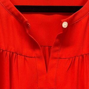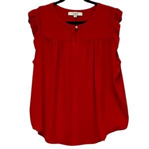 LOFT Women’s Sleeveless Blouse Large Red Ruffle Trim Keyhole Neck Flowy Top
