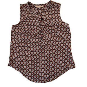 LOFT Womens Sleeveless Print Button Placket Lightweight Blouse Small