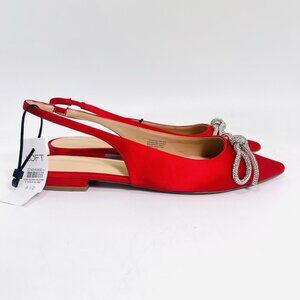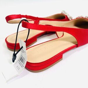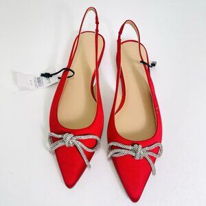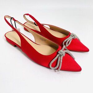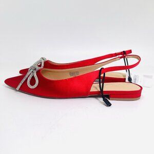LOFT Women’s Sparkle Bow Satin Slingback Flats Red Size 8.5
