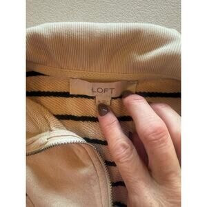LOFT Women's Striped Quarter-zip Pullover Navy Cream Sweatshirt Sz M