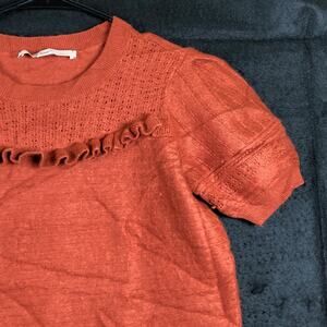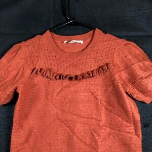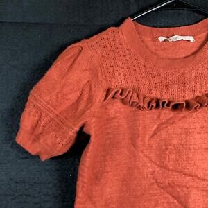 LOFT Womens Sweater Burnt Orange Ruffle Puff Sleeve Wool Blend Medium