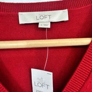 Keywords: LOFT sweater dress, red sweater dress, knit dress, long sleeve dress, v neck dress, button cuff dress, womens dress, size S, casual dress, fall dress, winter dress, red knit dress, LOFT dress, sweater mini dress