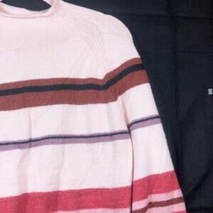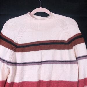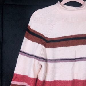 LOFT Womens Sweater Multicolored Striped Mock Neck Long Sleeve Wool Tunic S