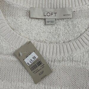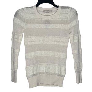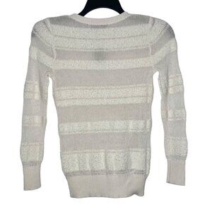 LOFT Womens Sweaters Size XSP Open Knit Sheer Panels Pullover Cotton Blend Ivory