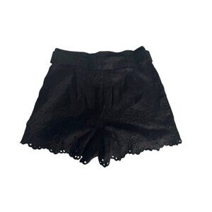 LOFT Women's Sz 4 Black Belted Pleated Eyelet Linen Blend Shorts NWT