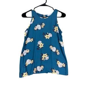 LOFT Womens Tank Top Blue White Floral Petite Crew Neck Keyhole Back XXSP