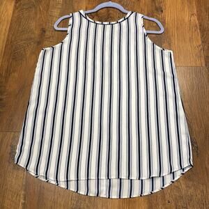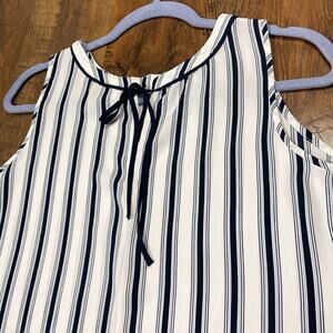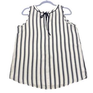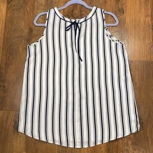 LOFT Womens Tank Top M White Blue Stripe Sleeveless Bow Keyhole