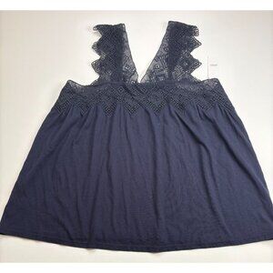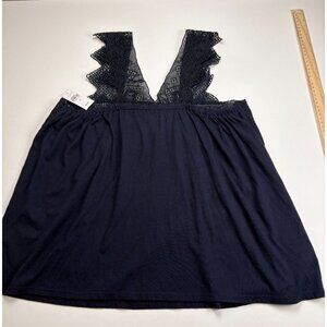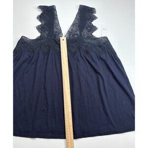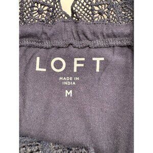 LOFT Womens Tank Top Medium M Navy Blue Crochet Lace Strap Swing Cami Blouse
