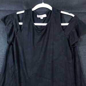 LOFT Womens Top Black Cold Short Sleeve Shoulder Rayon Blend Stretch M