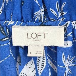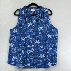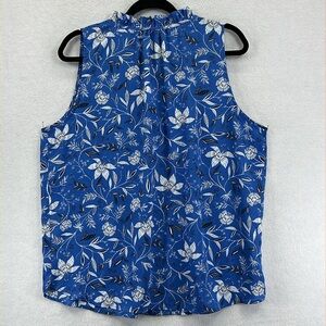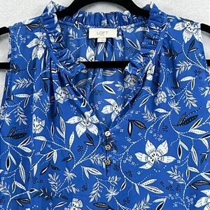 LOFT Women’s Top Blouse Sz L Blue & White Sleeveless 3-Button Front Like New