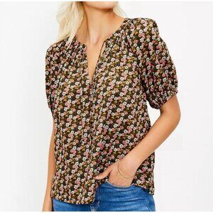 Loft floral neck tie puff sleeves top is in great preowned condition.