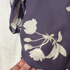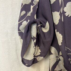 LOFT Women’s Top Size M Light Blue White Leaf Pattern Super Soft Long Sleeve. Front has Flattering Drape at Hem CottageCore