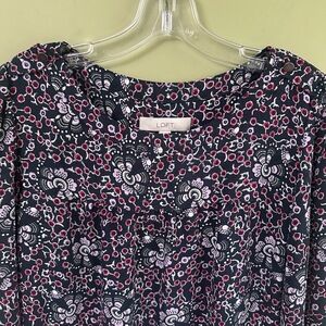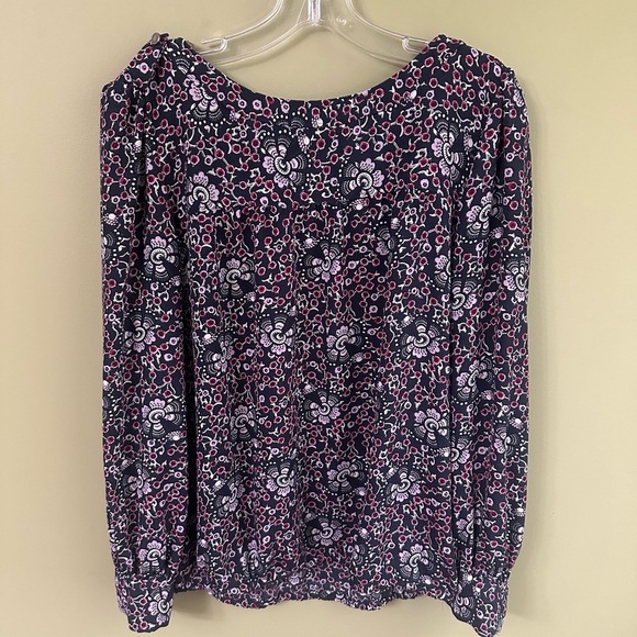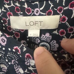 LOFT Womens Top Size Medium Blouse Multicolor Floral Long Sleeve Round Neck Casual Chic Boho Peasant Cottagecore