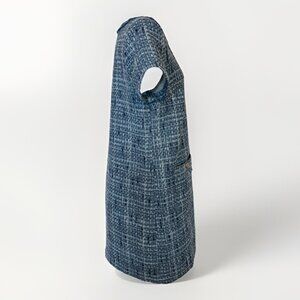 LOFT Womens Tweed Mini Pocket Dress 12 Blue Gold Buttons Fringe Old Money 60s