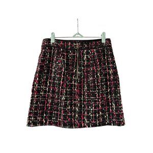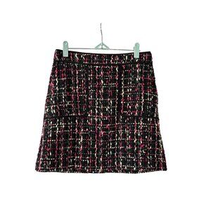 LOFT Womens Tweed Mini Skirt Black Pink White Grey Silver Textured Size 0 Lined