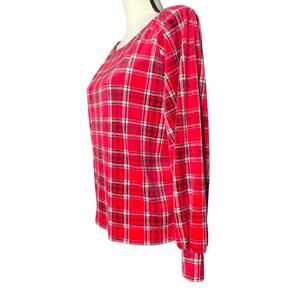 LOFT Women's Velour Blouse in Christmas Red Plaid w/Full Sleeves Size Small