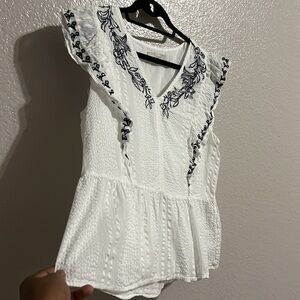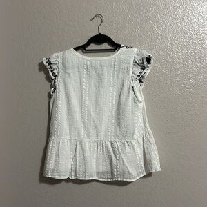 LOFT Women's White Blouse embroidered floral Size Large