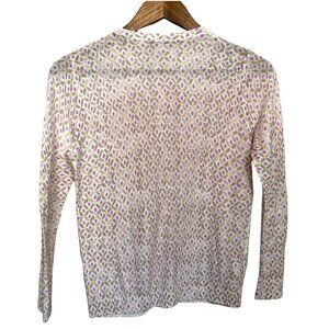 LOFT Womens White Geometric Floral Button Up Ribbed Cuff Cardigan Sweater Medium